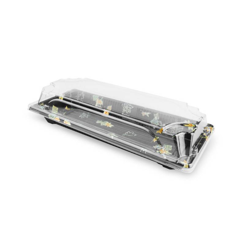 Bandeja desechable especialmente pensada para el almacenamiento y conservación de sushi, aunque también puede ser utilizada para guardar embutido, pastelería, etc.