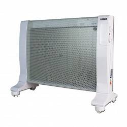 Radiador eléctrico de mica en color blanco. Incorpora termostato dinámico y un selector de potencia. Disponible en dos potencias máximas: