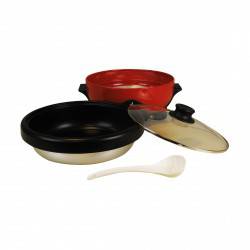 La cazuela tiene una capacidad de unos 3 litros y está compuesta por tres partes principales: base, recipiente y tapa: