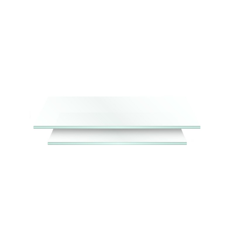 Cristal templado completamente transparente con bordes ligeramente viselados. Tiene un grosor de 8mm.
