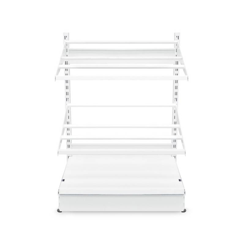 Nuestra estantería para fruterías está fabricada en hierro y lacada con pintura de poliestileno en color blanco. Es la solución ideal para fruterías o cualquier tienda de alimentación con sección de frutas y/o verduras.