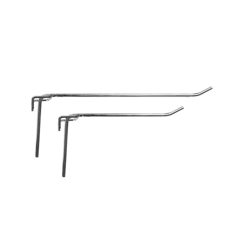 Gancho metálico para cualquiera de nuestras rejas. Tiene un gorsor de entre 5 y 6 mm y un acabado plateado cromado.