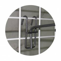 Estos ganchos pertenecen a la categoría de Ganchos para Reja y resultan ideales para colgar la mayoría de productos, ya que tienen un grosor de entre 5 y 6 mm. Son compatibles con todas nuestras rejas y destacan por el acabado en gris forja.