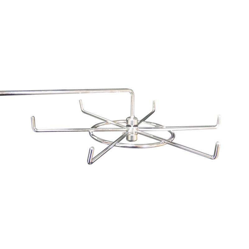 Gancho metálico giratorio para panel de lamas. Color cromado.