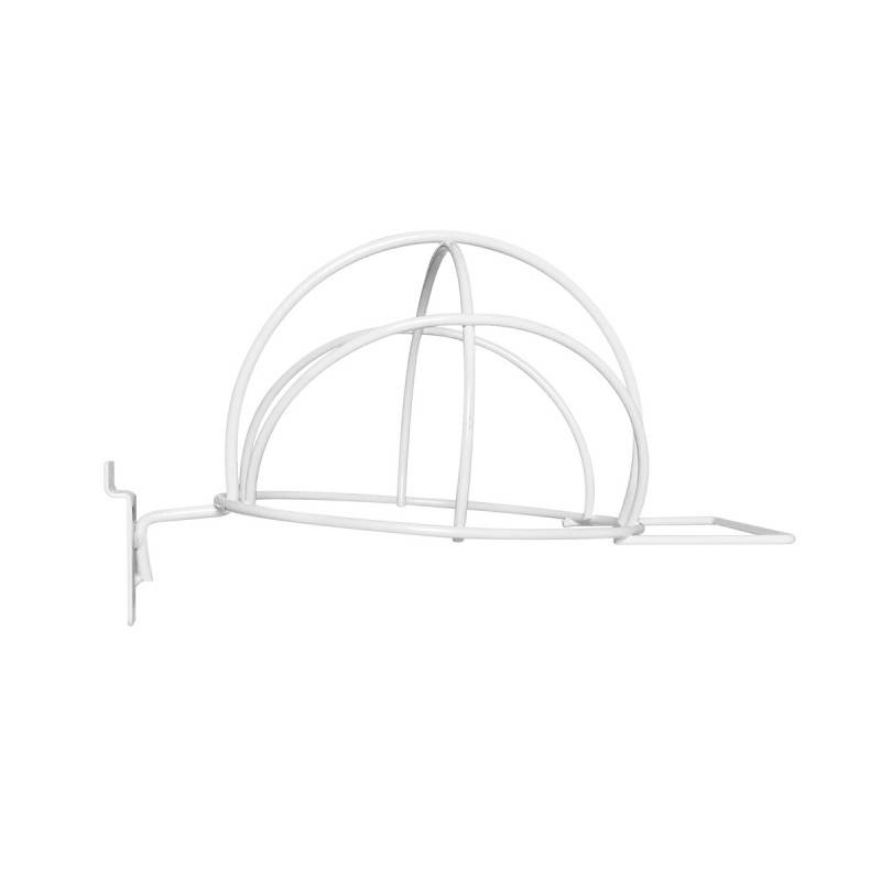 Soporte metálico de gorros o gorras para tablero de lamas en color blanco.