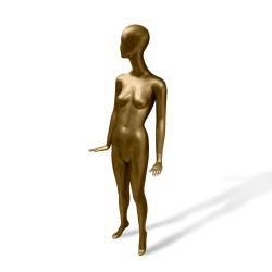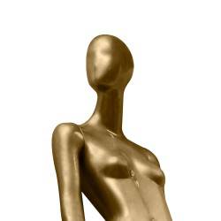 Este maniquí de mujer destaca por su postura dinámica y su color dorado, lo que dará un ambiente dinámico y llamativo a su escaparate.