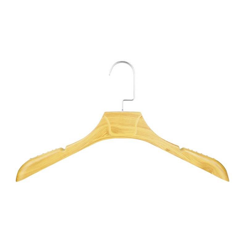 Percha de plástico imitación madera con pala ancha. 40 cm.