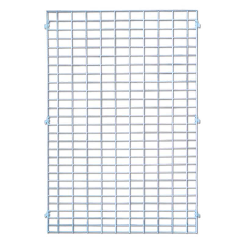 Reja fabricada en hierro de 5 mm y recubierta con pintura plástica blanca. Una buena opción para la parte trasera de nuestras estanterías, que permite combinar el uso de bandejas y de ganchos para reja.
